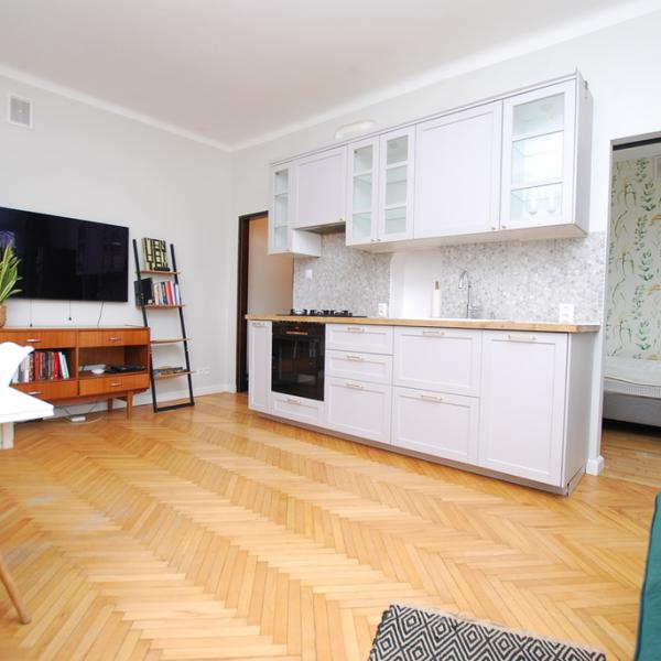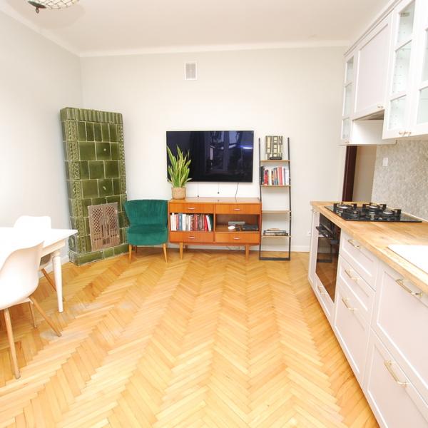 Oferujemy do sprzedaży funkcjonalne mieszkanie w przedwojennej kamienicy na Starych Bielanach. Ulica Podczaszyńskiego pomiędzy ulicami Cegłowską a ulicą Barcicką. Okolica małych, spokojnych i kameralnych uliczek. Stacja metra Słodowiec w odległości 450 metrów a stacja Stare Bielany 700 m. Idealna cisza. Widok z okien na domy jednorodzinne. 1 piętro kamienicy. Wysokie mieszkanie. Mieszkanie w co najmniej dobrym stanie - do odświeżenia. Pierwotnie mieszkanie stanowił pokój z widną kuchnią. Obecnie w miejscu kuchni mamy sypialnię a w pokoju aneks kuchenny z pełnym wyposażeniem: duża 4-palnikowa kuchnia z piekarnikiem, zlewozmywak, zmywarka oraz szafki z szufladami do przechowywania. Obszerna łazienka z kabina prysznicową. W przedpokoju szafa wnękowa. Drzwi wejściowe do mieszkania antywłamaniowe Gerda. Do dyspozycji duża piwnica o powierzchni prawie 10 m. Kamienica ocieplona, ogrodzona, tylko 12 mieszkań w budynku. Pełna własność. Księga wieczysta bez żadnych obciążeń.